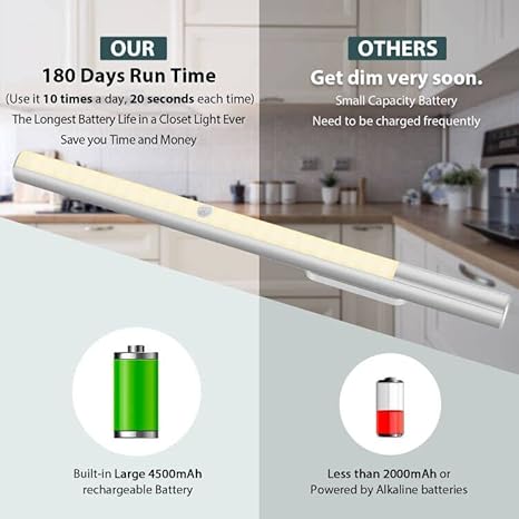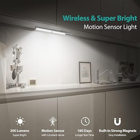 Wireless LED Closet Light – Super Bright Rechargeable 4500mAh Motion Sensor Under Cabinet Light, Stick-On, Long Battery Life